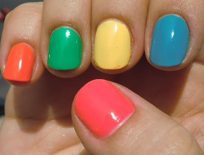 Hoje quero mostrar-vos as minhas unhas para o Carnaval, algo muito colorido como eu gosto, resolvi pintar as unhas com cores vibrantes, algo que dissesse cheguei, e acreditem, na rua, com o brilho do sol, fica o máximo!